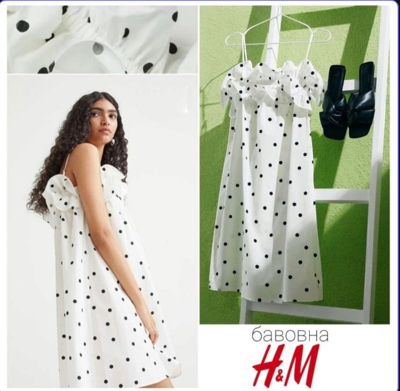 Короткое платье прямого кроя из хлопкового плетения с прикрытой резинкой, собранными воланами вверху и регулируемыми бретелями. размер от производителя L длина регулируется бретелями 90-97 см в груди талии и бедрах свободно в составе: 100% хлопок