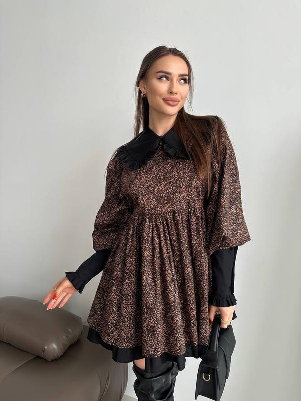 Сукня вільного крою з об'ємними рукавами та зі знімним комірцем і манжетами