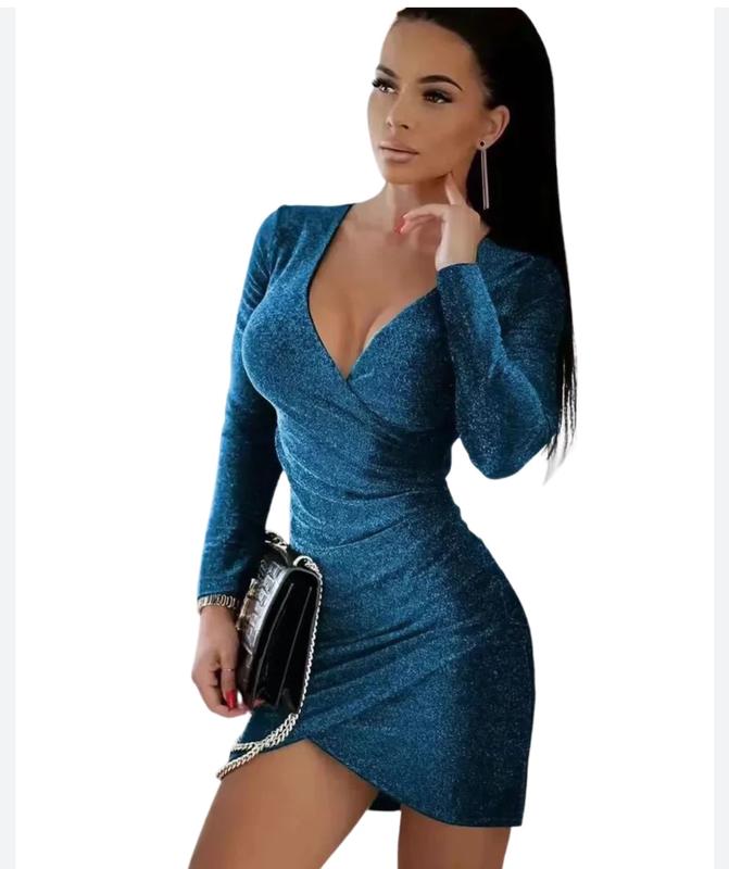 Элегантное женское платье с v-образным вырезом и длинными рукавами