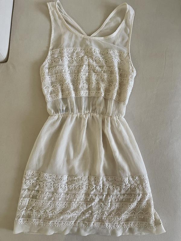 Очень красивое женственное платье кремового цвета с вышивкой. На спинке есть небольшой разрез. Резинка на талии, есть подкладка юбки, так что платье не будет светиться ;) Размер 36 Идеальное состояние Длина где-то 78-78см от плеча