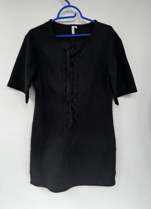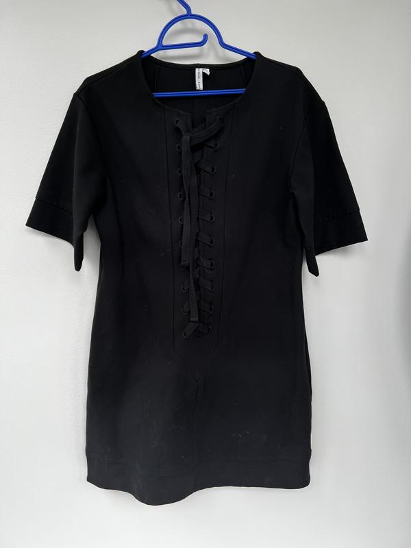 Платье-футболка с декоративным шнурком спереди. Цупка тканина