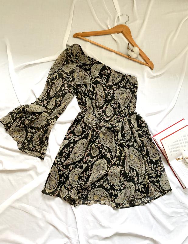 Невероятное платье с одним рукавчиком Размер s Длина 78 НОГ 39 ПОТ 30+(на резинке) Рукав 63