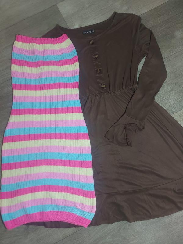 Цена за два платья На худи или подростка девочку Платье коричневое имитация замши Shein Длина 80 см Н.о.груди 40 см+ Н.о.талия 27-37 см Бедра свободно Рукав 59 см Полиэстер Платье машинная вязка в полоску Длина 66 см Н.о.груди 28-45 см Н.о.талия 25-37 см Н.о.стегна 33-47 см 🌞🌞 Отправка от 50 грн. обычно на следующий день,после оплаты. Оплата на картку Монобанк 100%,або беспечна оплата Шафа В продаже вещи категории : сток, секонд,новые, б.у Обычно вещи не выстираны,могут иметь запах Пожалуйста сверьте замеры, со своими удобными вещами. Как у вас есть сомнения, прекратятся добавим дополнительные замеры. Замеры могут иметь погрешность +- 1-2 см Цвет (оттенок)может отличаться от цвета на мониторе. Возвращение и обмена отсутствуют. 0160