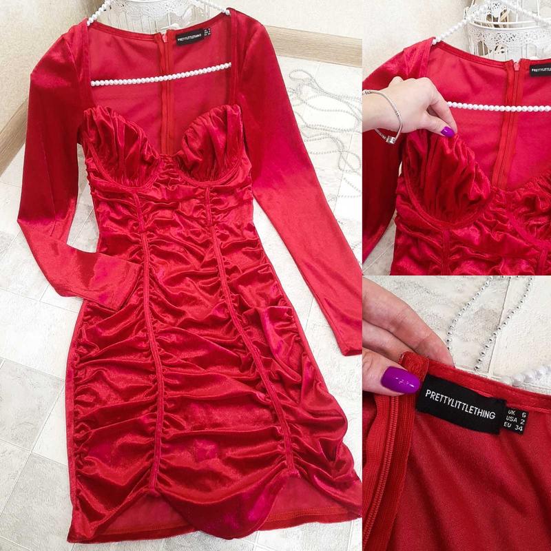 Роскошное велюровое платье🔥Нова,бренд! Смотрится очень красиво Размер XS/S) Длина: 83 см) На груди есть косточки)