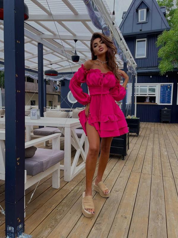 Сукня в стилі міні з воланами ідеально підкреслить вашу жіночність та ніжність,шнурівка по спинці зробить більш витонченою вашу талію ▪️Модель: 216 ▫️Розмір: S-M; M-L ▪️Тканина: креп костюмка ▫️Колір: чорний; малина; блакитний; пудра 📸 Реал фото