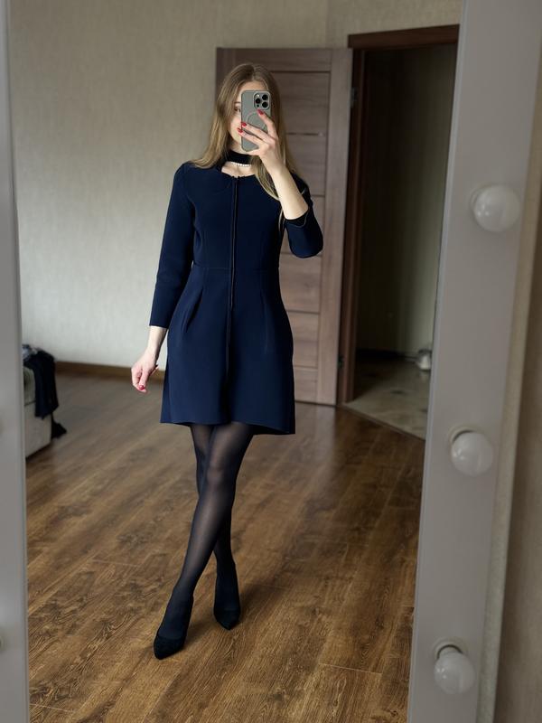 Платье плотное пальто темно синее размер s