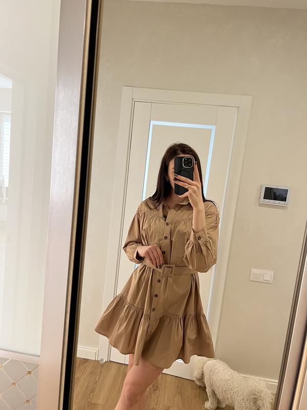100% коттон; производитель Италия, ни разу не одевала, можно носить под пояс и без него. Купила за 1400 грн, отсеку по супер цене, как для такого платья