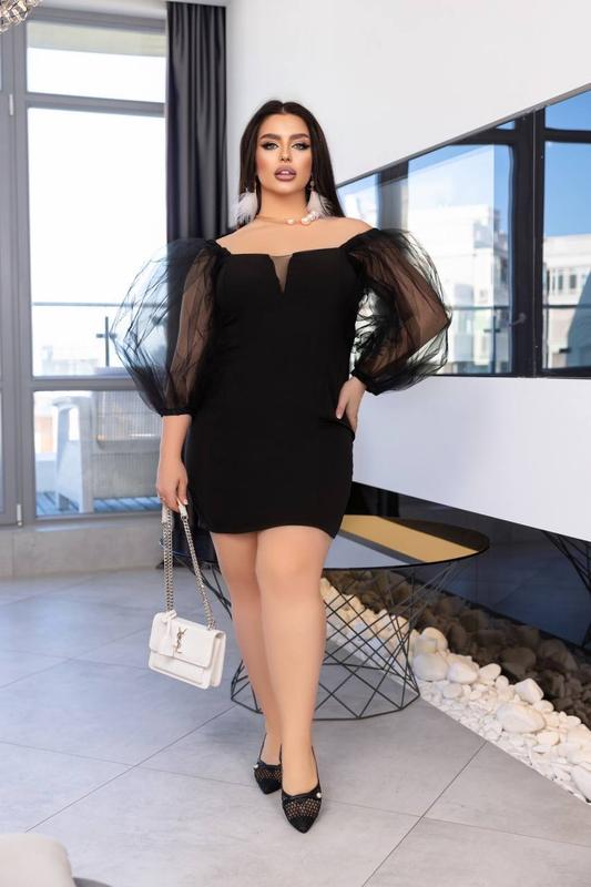 Сукня Модель: 309 Размер: 42-44, 46-48;50-52 Цвет: черный Ткань:костюмка+ сетка Цена :1200грн Романтичное платье, максимально нежное и женское силуэт, подойдет на любое событие