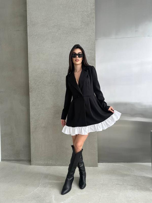 Новинка💣 ✔️Сукня ✔️Мод.535 ✔️Размер:42-44,46-48 ✔️Тканина: Костюмка+софт ✔️Цвет: черный+белый 🖤 Роскошное платье-пиджак в котором ты будешь непревзойденно🖤 •Сукня •Платье •Сухая вечерняя •Мини Платье
