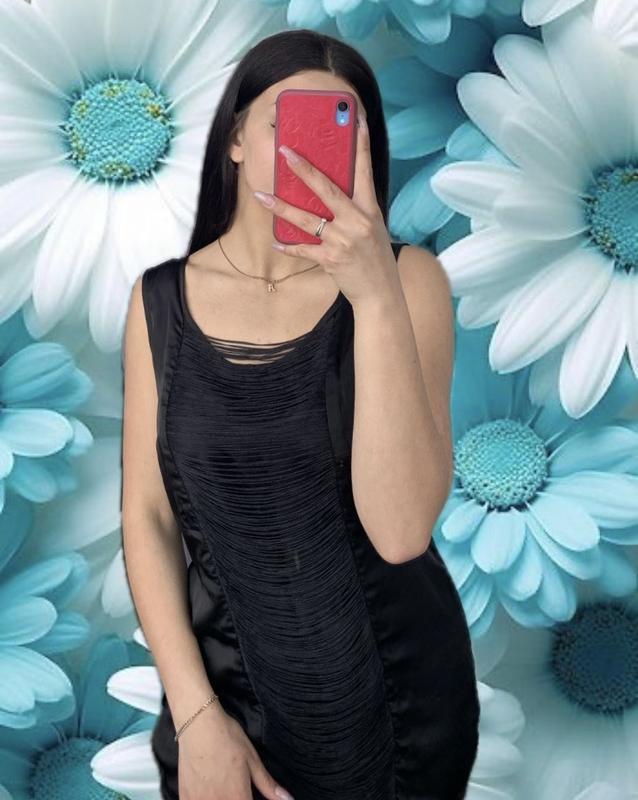 Атласна жіноча сукня зі вставками бахроми ПОГ 49, довжина 74