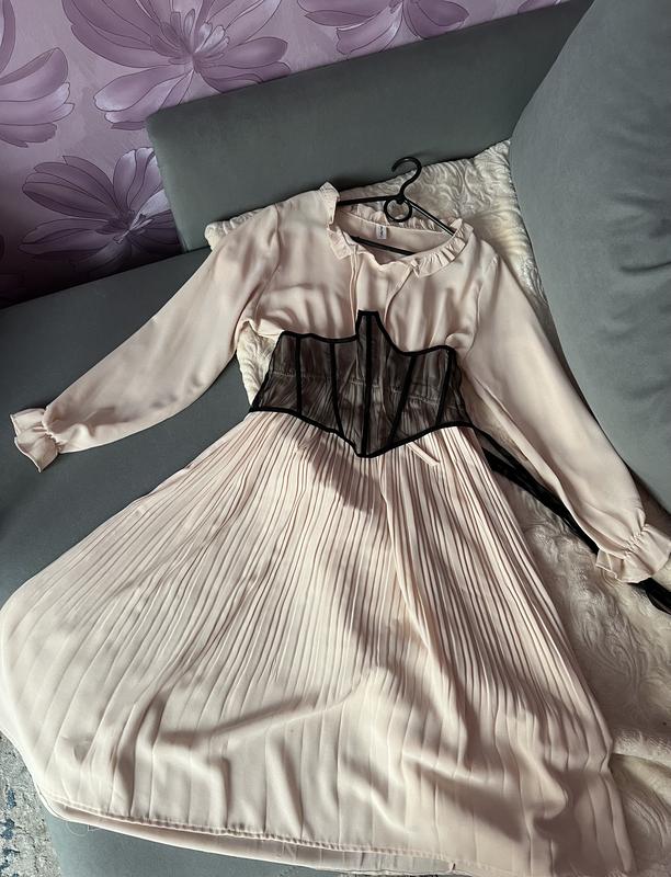 Сукня йде з корсетом , на поясі також є гумка. Легка тканина не відчувається на тілі .