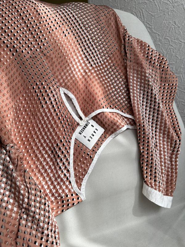 Откройте для себя вневременной привлекательность этого платья интересного кроя, искусно сотканного и удлиненной со спины. Длинные рукава обеспечивают комфорт и стиль в любое время года. Сзади есть разрез. Чтобы завершить образ, подумай об сочетании с приталенным пиджаком, ботильонами или туфлями на каблуке. Изготовлена из экологически чистого вискозного материала, это экологический выбор для вашего гардероба. *** Замеры: По плечам-40 см Подмышками-52 см По талии-53 см Длина-80 см