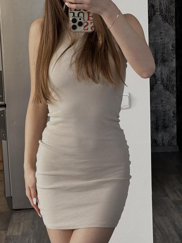 Сукня бежева в обтяжку в рубчик Длина: 81см Талия: 23см