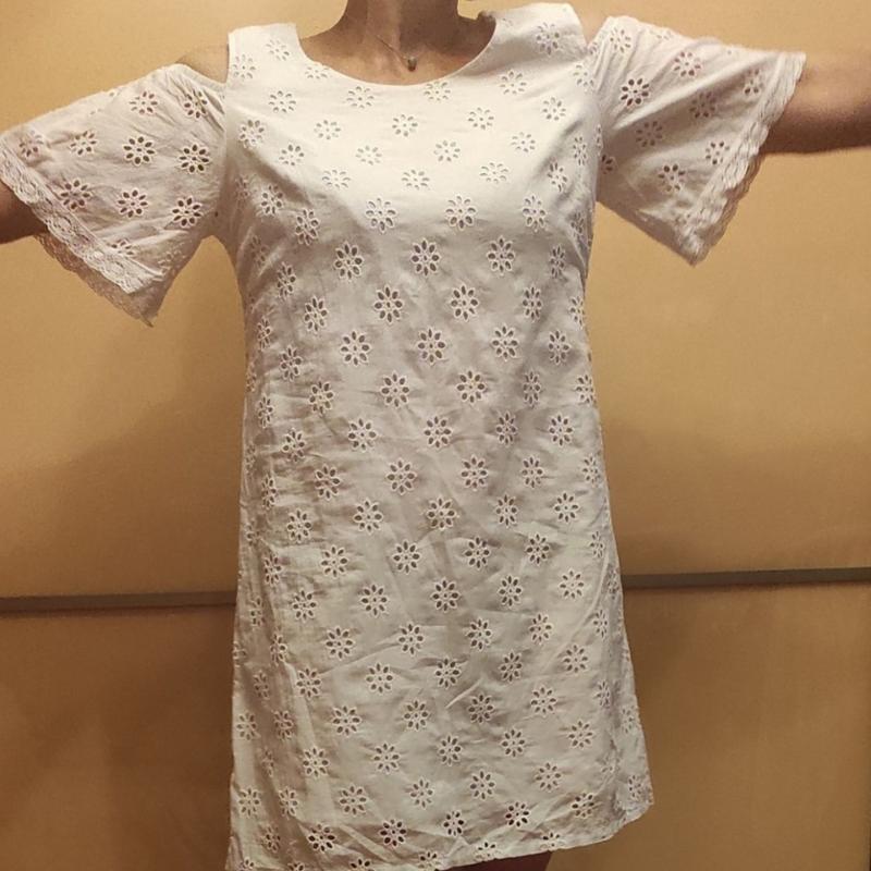Новое платье из прошвы на жару супер, было сорвано бирка, но ни разу не надевалось, длина 96 см, ПОГ 54 см, интересный рукавчик