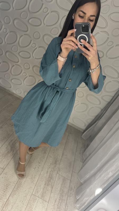 Платье “PARIS” ✅Ткань : муслин (х/б) 🌈Цвет: черный, горчица, голубой, пудра, оливка 👭Размер : 1 (42-46), 2 ( 48-52 )