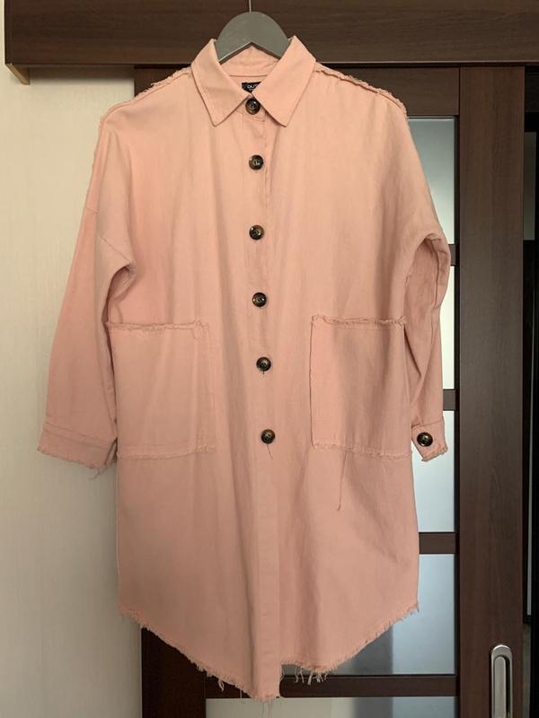 Платье-рубаха( подойдет беременным).Очень удобная вещь.Ткань джинс,розовый цвет.Замеры:длина 90,п/о бедер 54,под руками 55,рукав спущенный,пошив ровный,поэтому размер 44-48.На пуговицах,с карманами.Носилось мало.