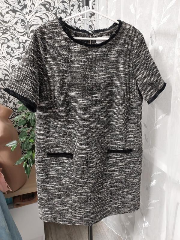 Женское серое с черной отделкой мини платье от бренда Wallis, размером 16,44-46, из полиэстра, коттона и эластана. В идеальном состоянии, красиво тянется. Все замеры на фото.