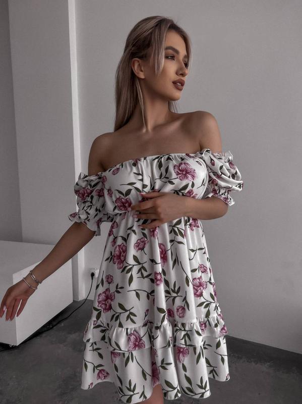 Нежное платье с рукавом фонариком, талия на резинке арт. mag. 10403 Ткань: качественный принтованный лён Размеры: С-М (42-44), М-Л (44-46)