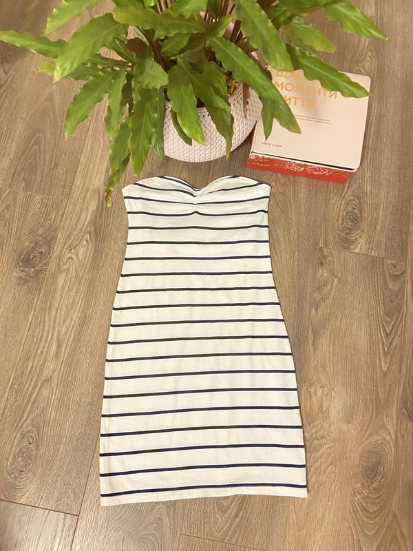 Платье в полоску размер S Состав: 95% котле, 5% эластан Длина: 65 Бюст 33 Талия 31 По линии низа 39