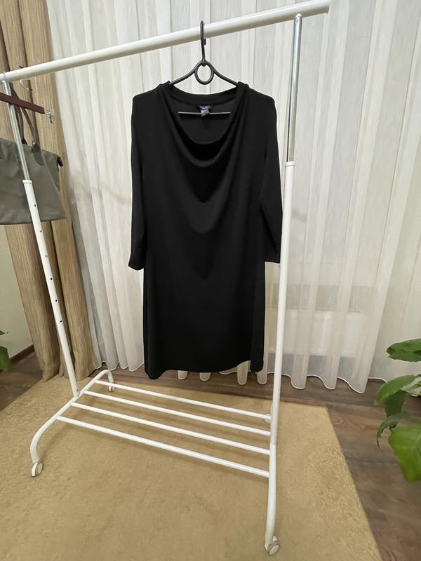 Маленька чорна сукня, нова без бірок,дуже гарно тягнеться тканина. Вкорочений рукав, гарний виріз водоспад, не просвічується, дуже комфортна. Ширина під рукавами 52 см Талія 45 см Стегна 54 см + Довжина 90 см Плече 10 см Рукав 44 см