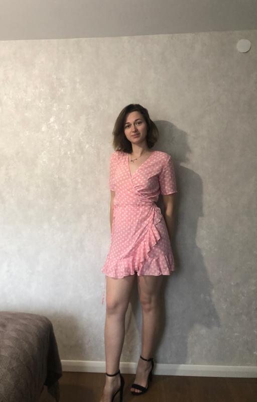 Красивое летнее платье от украинского бренда в горох. Ткань - вискоза. Очень приятная на ощупь и отлично дышит даже в самый жаркий день. Рюшики добавляют романтичности и легкости. Размер XS. Замеры: длина с рюшами - 85, плечи - 37, длина рукава - 22, ширина рукава - 15, грудь - 42 ( но можно регулировать), бедра - 48см (теж регулируется).