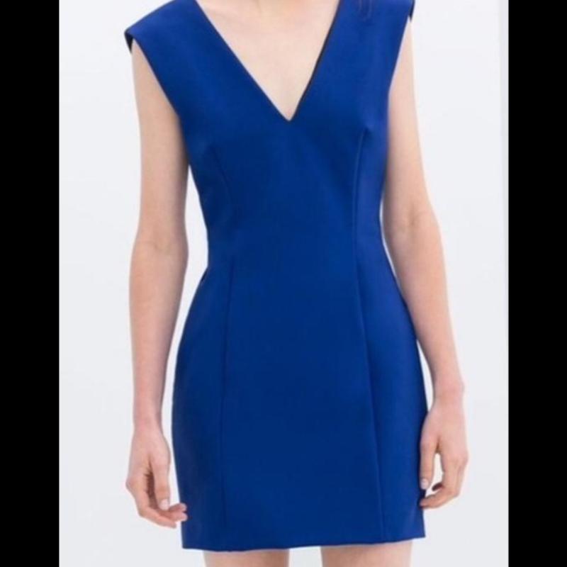 Женское платье Zara, размер S, королевский синий, облегающее, с V-образным вырезом, стрейч сзади замеры длина-84см ширина по груди-39см талия-35см бёдра-41см