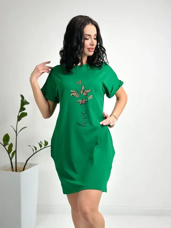 Летнее платье мини с принтом "Glide" 540 грн Одно из главных преимуществ платья — это материал высочайшего качества. Турецкий кулир на 100% состоит из хлопка, очень приятный к телу и не парит тело даже при сильной жаре и влажности. Модель Glide имеет полусвободный крой, который подчеркивает достоинства фигуры, но не сковывает движений и не акцентирует внимание на складочках и мелких недостатках. Качественный хлопок отлично впитывает влагу и не задерживает движение воздуха, поэтому даже жаркий летний день станет комфортным. Круглая горловина и свободный фасон делают "Glide" похожим на футболку, но нежный принт и стильные отвороты смягчают этот эффект и делают образ более женственным. Изюминка модели - боковые карманы, которые делают платье еще более удобным в повседневной жизни. Модель представлена в 7 цветах: изящном граффите, романтическом джинсе, нежном бежевом, светло-сером, теплом мокке, базовом черном и сочном травянисто-зеленом. Каждый оттенок создан, чтобы ваши клиенты могли найти именно свой идеальный цвет, который будет радовать и сохранять их комфорт в теплые дни.