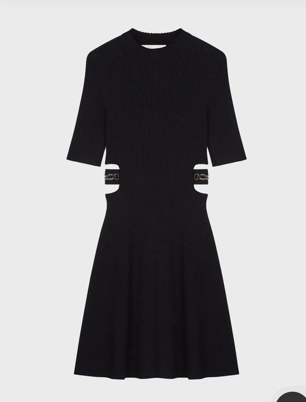 Платье в рубчик с 3/4 рукавом, цвет черный, фасон полу приталенный.