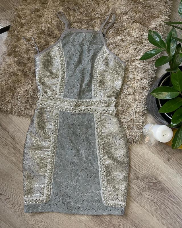 Почти новое платье, одетое несколько раз. Украшена камешками, красиво садится по фигуре. Размер ХС-С.