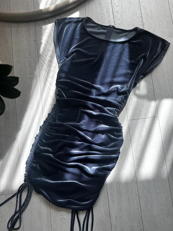 Классная модель платья из велюра. Затяжки по бокам и по спинке. На молнии. Длина регулируется затяжками. Классно как под кеды так и под каблук.