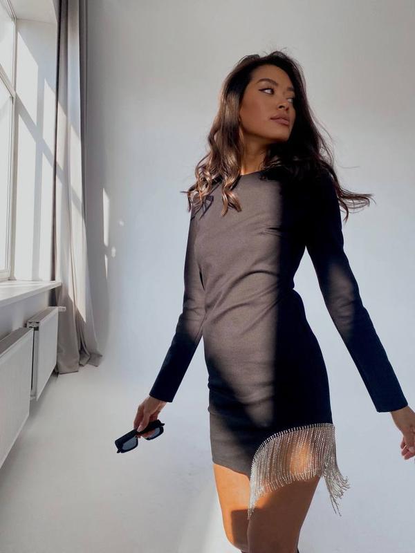 Цвет: черный Размер: 42-44, 46-48 Материал: трикотаж Алекс На спинке потайная молния, бахрома металлическая