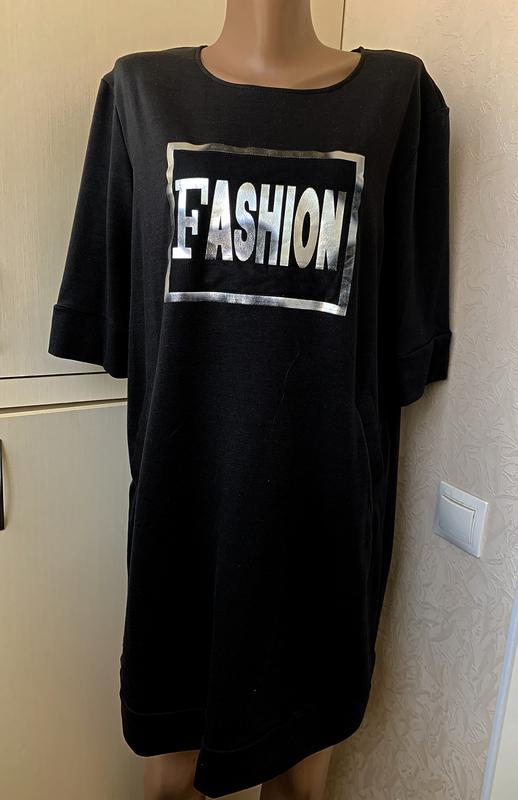 Платье с карманами Размер 52/54 Тканина трикотаж Тянется средне Вставка сетка и надпись серебристая Замеры: ПОГ - 53 см ПОБ - 57 Длина - 90 см Рукав от плеча - 34 см