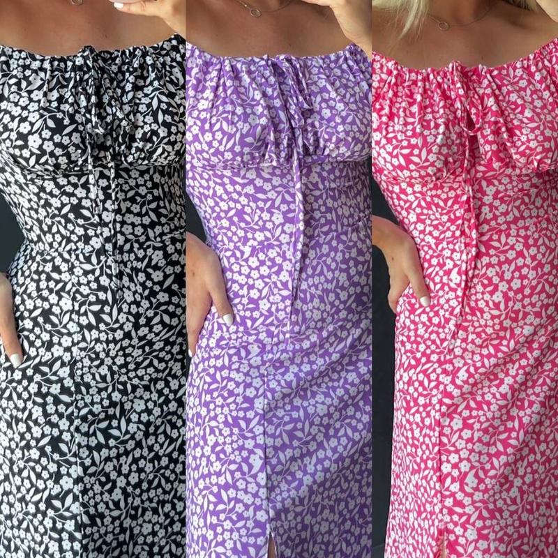 ✅НОВИНКА✅ Сукня🔝 ▪Код товару: 824 ▪480 грн🔥 ▪Ткань:софт принт цветы ▪Цвета: белый,черный,розовый,лиловый ▪Размер:S-M; M-L Параметри на S-M: Длина изделия 72 Длина рукава 64 ОГ 91 ОТ 64 ОС 106 📌Платье с открытой горловиной приталенного силуэта.Сукня из плотной ткани без подкладки.