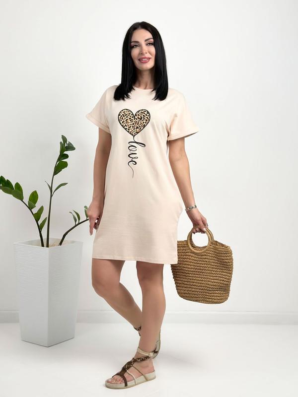 Сердце платья – это его материал: изысканный турецкий кулир (хлопок), который дарит комфорт в течение всего дня. Свободный фасон, отвороты на рукавах и контрастный принт придают образу непринужденности и легкости. Цвета: черный, джинс, зеленый, мокко, бежевый, серый, графит. Размеры: 42-44; 46-48; 50-52 Замеры: длина по спине 91-93см; длина рукава от горловины 30-31см.
