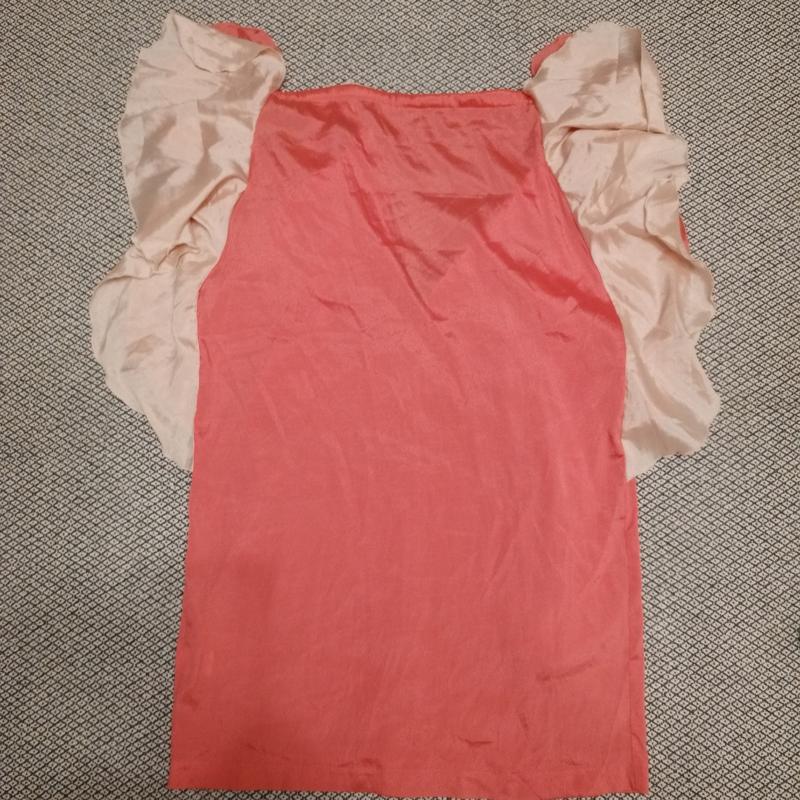 Платье новое, без этикетки, замеры на фото, ткань не тянется, указанный размер М, это где-то максимум наш 44 размер, следует смотреть по замерам, цвет какой-то розово-коралловый + беж