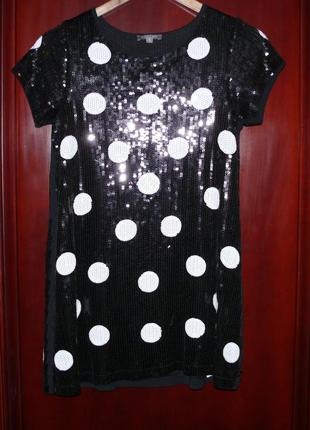 Нарядное платье в пайетках ТМ М&S на невысокую девушку или подростка. Подойдет тем, кто носит 42-44 р. Новое, без бирки - 490 грн. Покупала для себя, но оказалось слишком коротким. В принципе, можно использовать и как тунику. Длина: плечи: 35 см ПОГ: 41 см ПОТ: 44-45 см ПОБ: 49см длина: 69 см