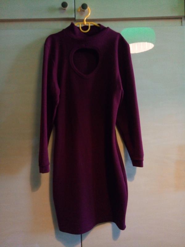 Повседневное бордовое платье, р.44-46, с вырезом на груди, красивое, приталенное