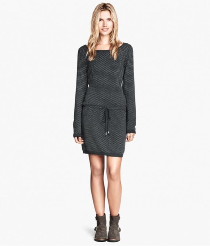 Серое платье с пояском H&M Размер: - S (44) Длина по спинке - 85 см,ПОГ - 43 см, Длина рукава - 64 см Состав - 40% хлопок, 30% полиамид, 25% вискоза, 5% шерсть (альпака)