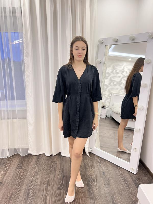 Цвет темный графит Ткань очень приятная на ощупь длина 85 По талии 36 есть резинка по бокам Рост девочки 173