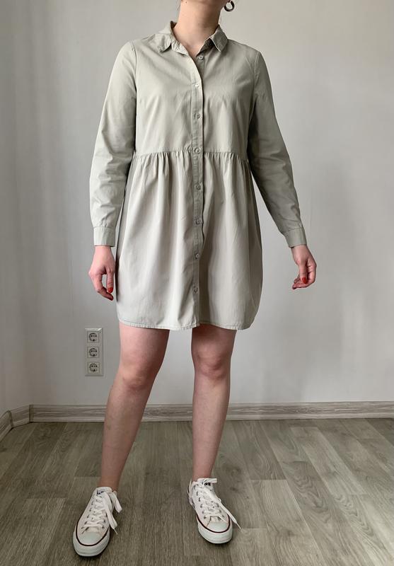 Сукня-сорочка у фісташковому кольорі😍 Розмір Л, у складі 100% катон Довжина 81 см, напівобхват грудей 52 см Стан ідеал