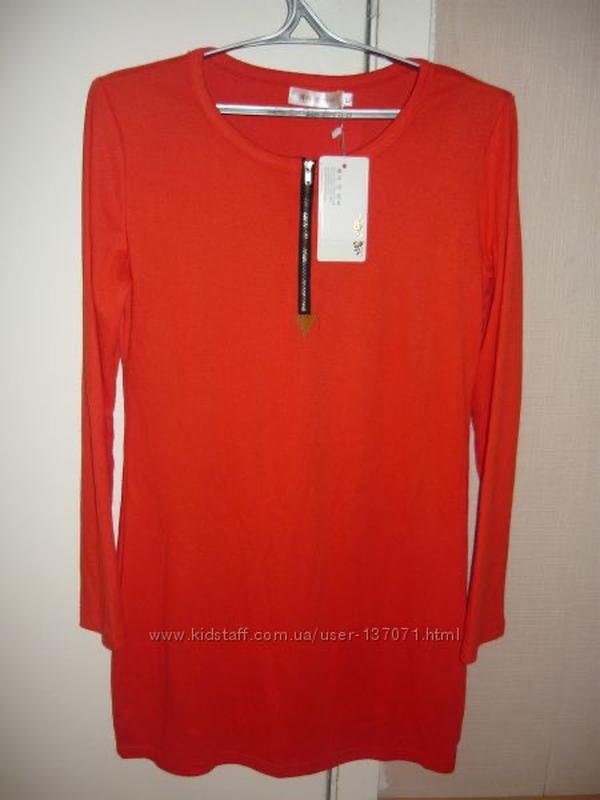 Платье чудесного ярко-оранжевого цвета с молнией. Заказывала на EBay, но размер не подошел. Размер скорее всего 46 (на 44 широковато), на небольшой рост, около 165, или любительницам мини. Или с лосинами носить, тоже будет здорово. Новое, даже с биркой, только примеряла. Материал трикотажный, тянется.