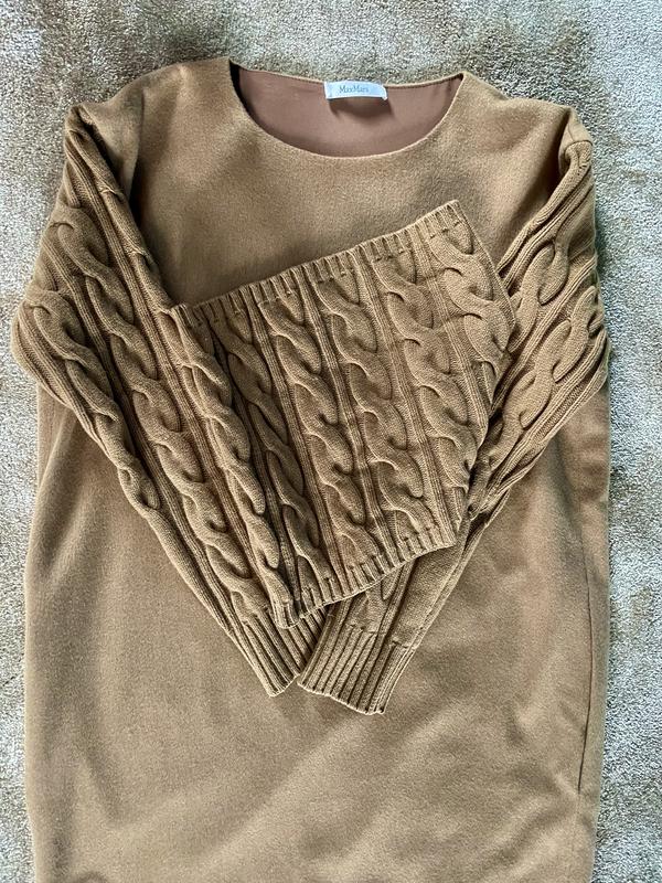Крута сукня MaxMara. У складі вовна та кашемір, на підкладі. Колір кемел. З боків кишені. Комір кріпиться ґудзиком. Довжина 90 см