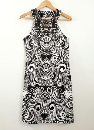 Черно белое платье миди мини графичный принт