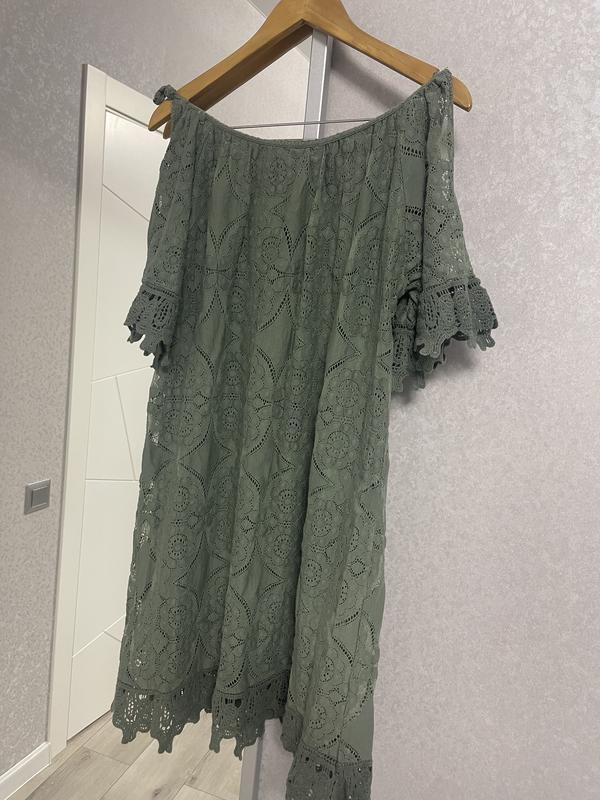На підкладці, легке мереживо, натуральна тканина, колір насичений хакі Груди 62 Довжина 90