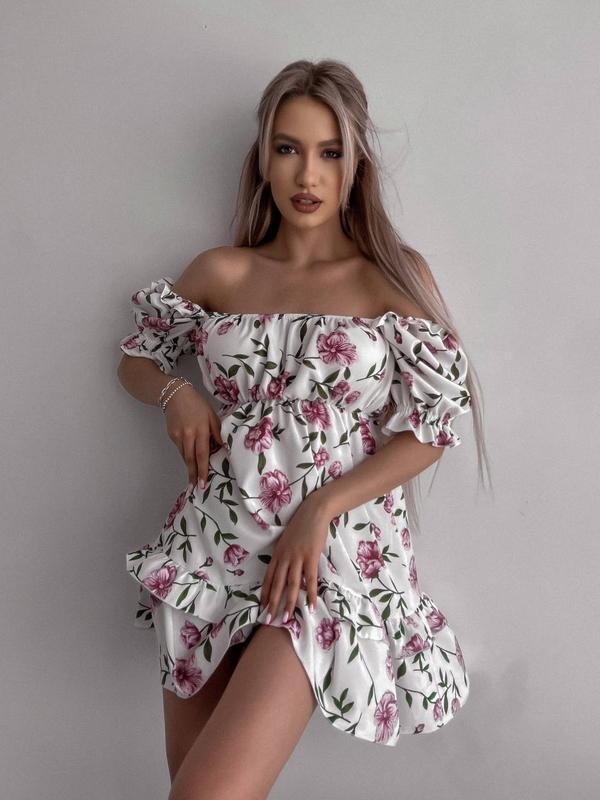 Нежное платье с рукавом фонариком, талия на резинке арт. mag. 10403 Ткань: качественный принтованный лён Размеры: С-М (42-44), М-Л (44-46)