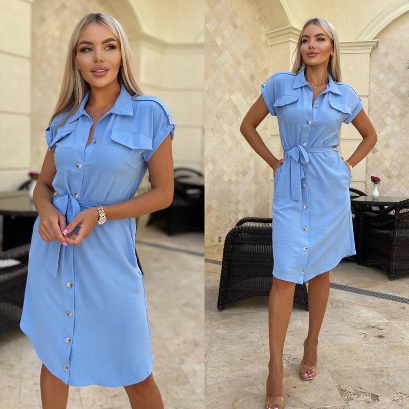 Сукня Модель 2058 Ткань американский креп жатка Размеры 42-44, 46-48, 50-52 Цена 1100грн Цвета: голубой, малина, темно-синий, хаки В боковых швах есть карманы. Пуговицы рабочие по всей длине. Тканевый пояс в комплекте