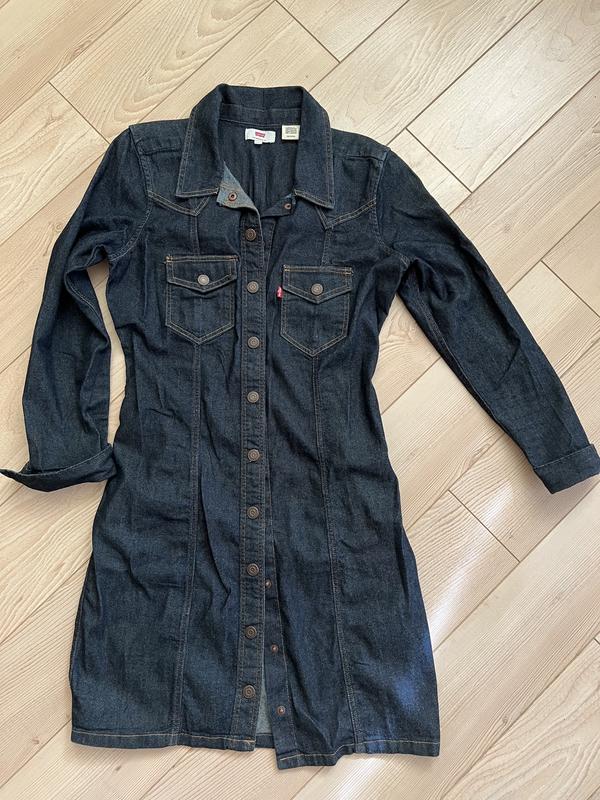 Мини платье темного цвета деним. Идеальное состояние, одевала всего несколько раз. Размер XS, но будет и на S. На фото я, рост 175 см, размер М, так что платье очень обтягивает. Замеры: Длина: 86 см Ширина в груди: 44см Рукав: 55 см