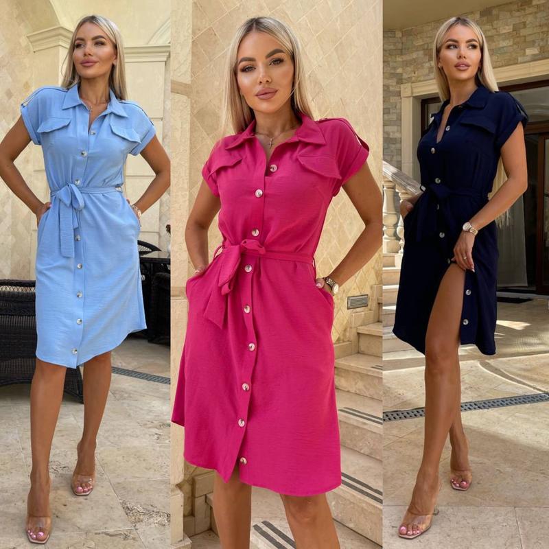 Сукня Модель 2058 Ткань американский креп жатка Размеры 42-44, 46-48, 50-52 Цена 1100грн Цвета: голубой, малина, темно-синий, хаки В боковых швах есть карманы. Пуговицы рабочие по всей длине. Тканевый пояс в комплекте