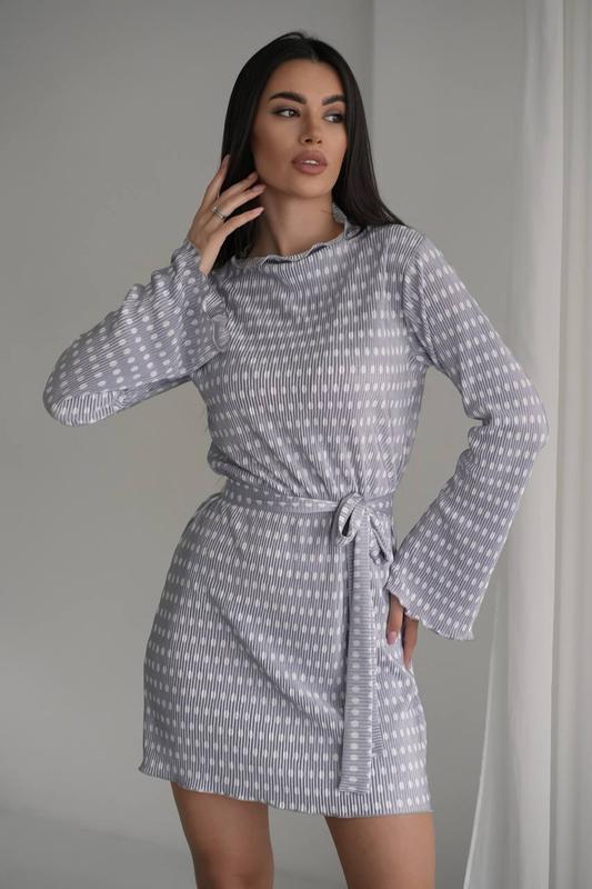 Платье из высококачественного фактурного турецкого материала. Комплектуется поясом.Подойдет под любой образ ✅ ▫️Модель 842 ▫️Тканина трикотаж гофре ▫️Цвет малина,серый ▫️Размер универсальный ▫️Цена 820 грн ▫️Замеры ▫️Грудь 88-95 ▫️Талия 60-80 ▫️Бедра 90-100 ▫️Рукав 62 ▫️Длина 87 51