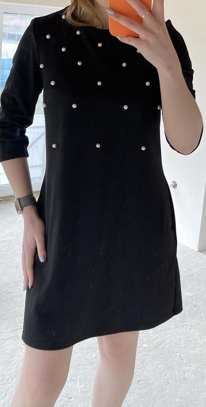 Чорна сукня, трикотаж Має 2 кармани, декоративні перлини